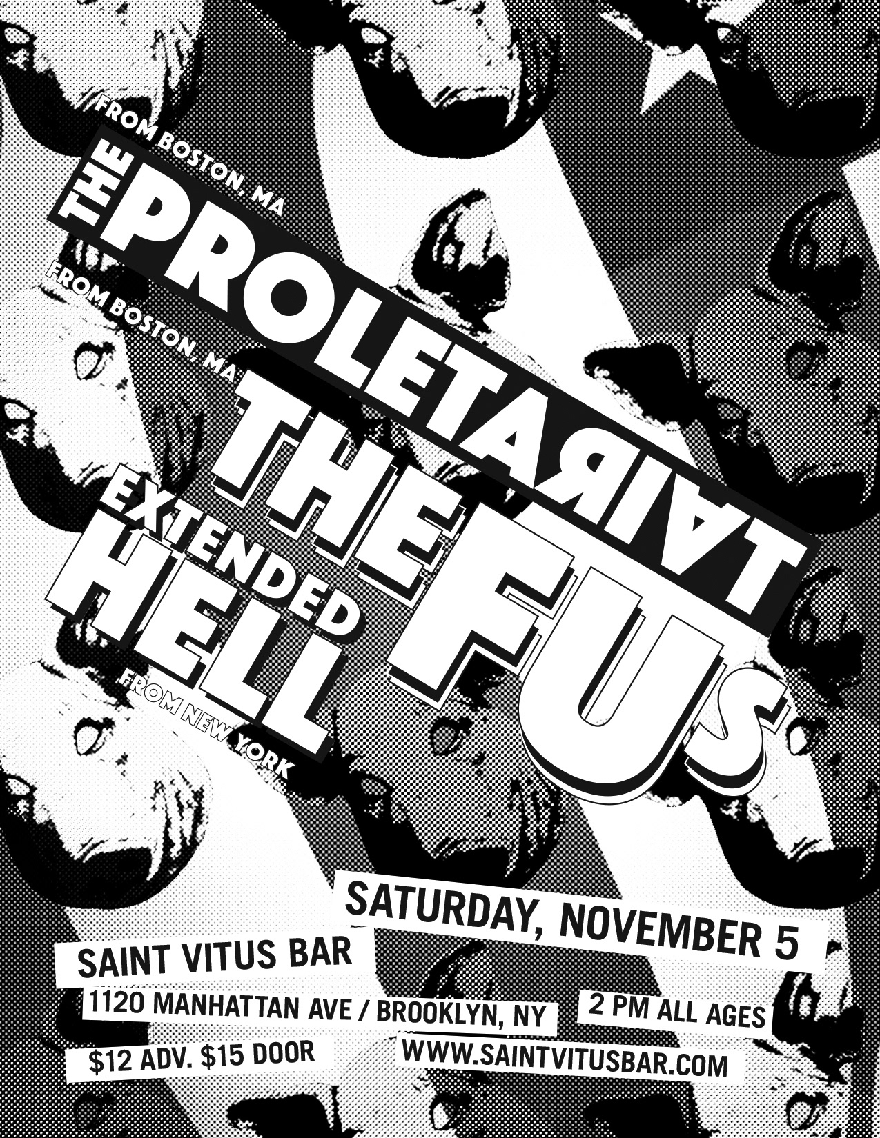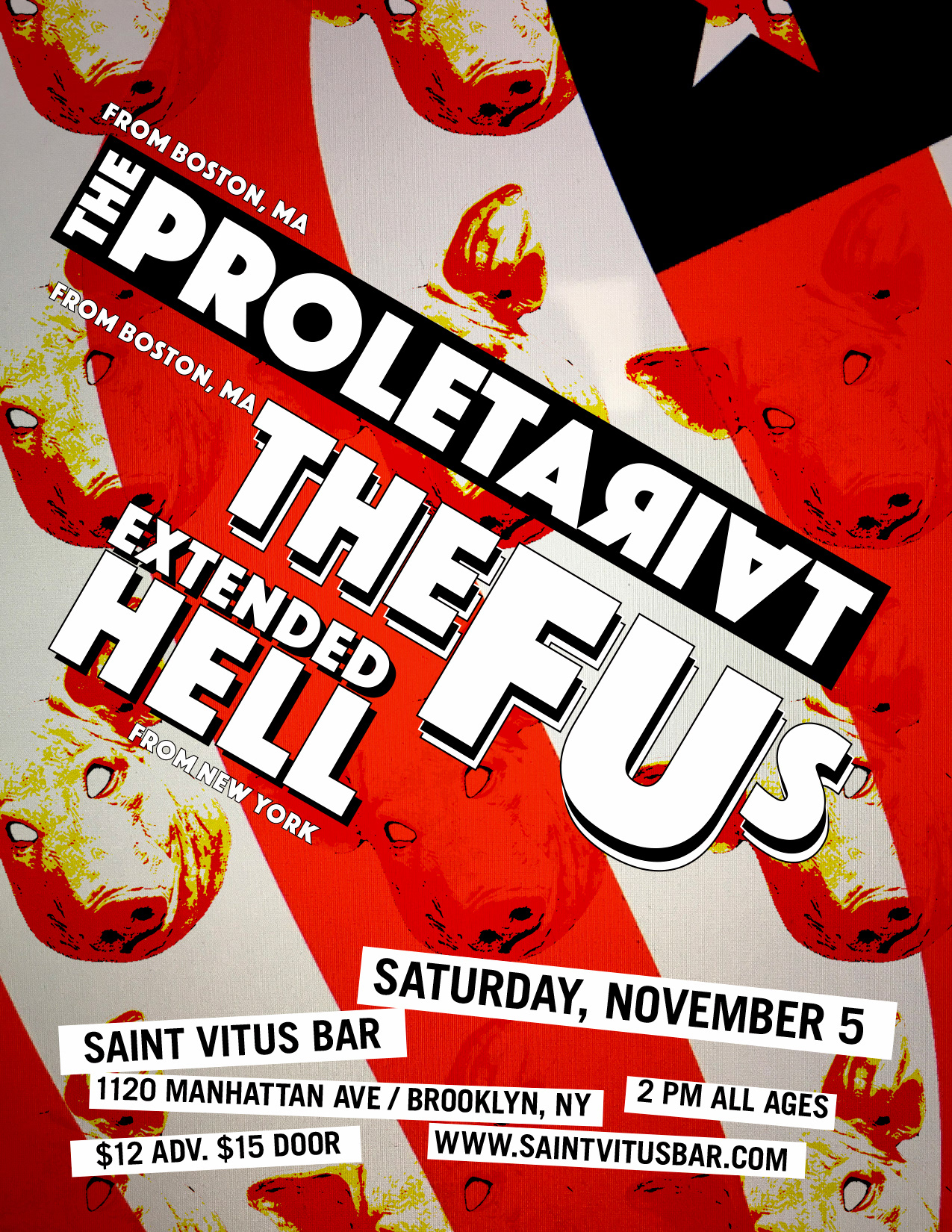 Flier for a gig in Brooklyn at Saint Vitus Bar. A reunion of Boston hardcore legends The Proletariat and The FUs.